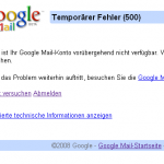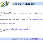Google Mail ist ja beta – da muss nicht immer alles klappen. Z.B. jetzt gerade. Erstaunlich ist aber die Offenherzigkeit, mit der der Suchmaschinengigant nach einem Klick technische Details zum Fehler preisgibt.